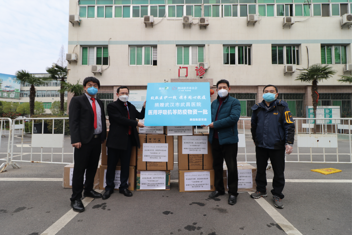 2020年,奧園集團黨委、奧園慈善基金會向武漢市武昌醫(yī)院捐贈醫(yī)用呼吸機等防疫物資