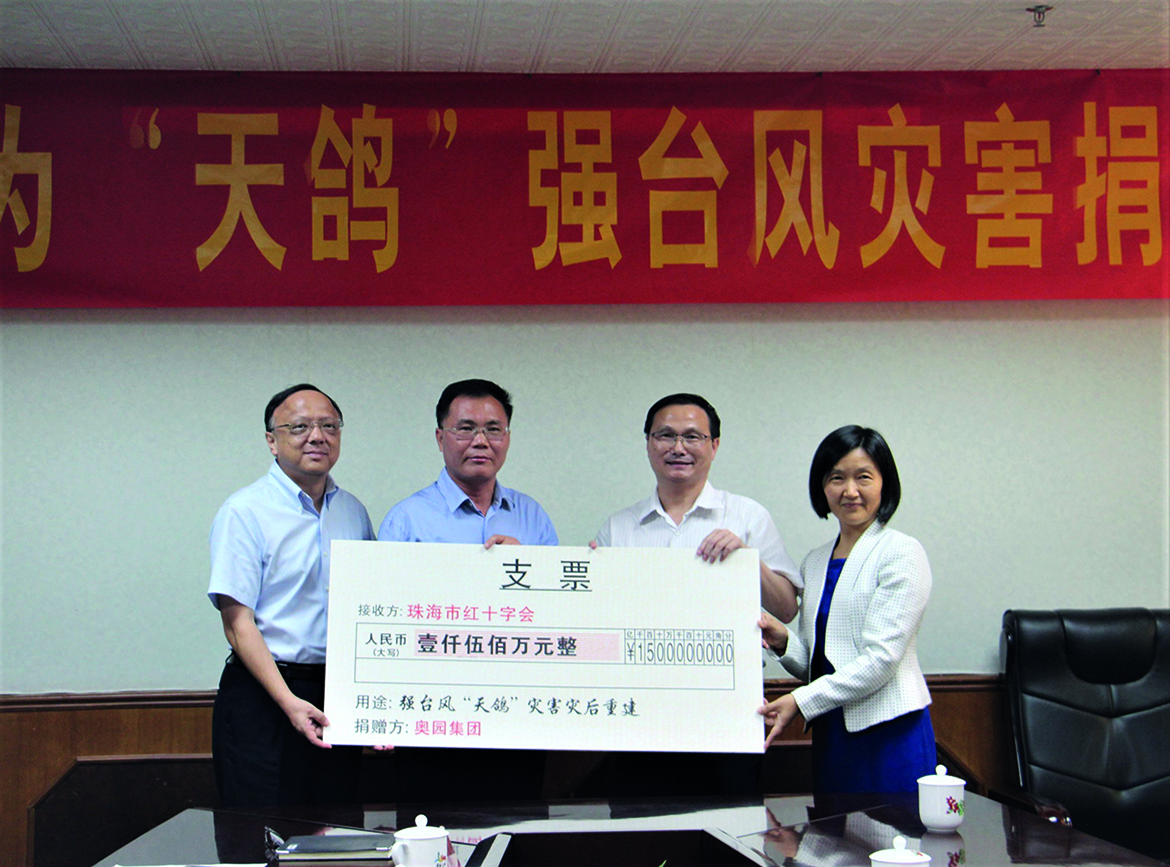 2017年,中國奧園集團為珠海“天鴿”強臺風(fēng)災(zāi)后重建捐贈1500萬