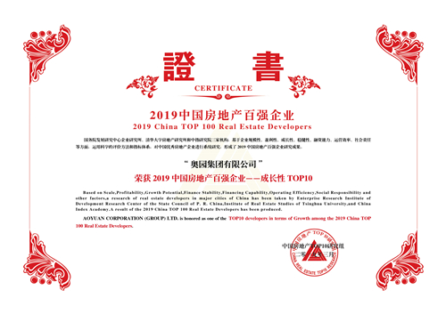 2019中國(guó)房地產(chǎn)百?gòu)?qiáng)企業(yè)—成長(zhǎng)性TOP10第9名