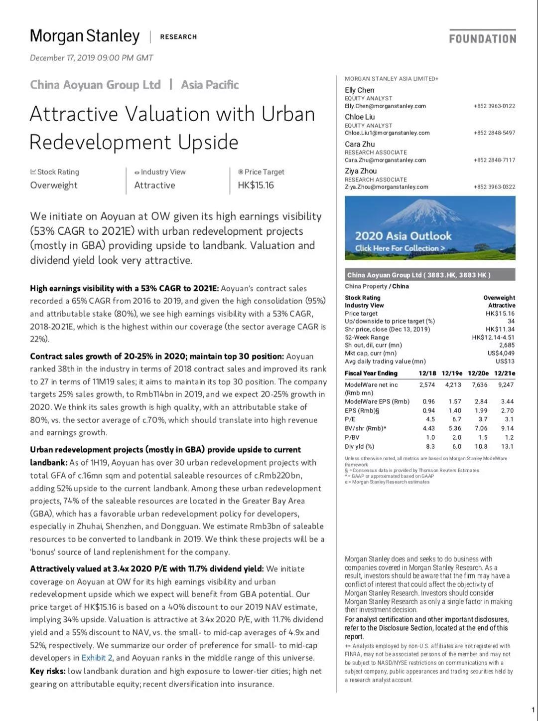 大行報告 | 中國奧園獲摩根士丹利首次覆蓋,評級“增持”,目標價15.16港元