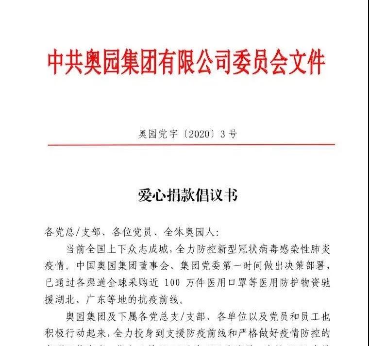 奧園集團黨委在2月17日發(fā)布《愛心捐款倡議書》