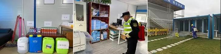 第三步,勤消殺無(wú)死角。在作業(yè)工人返崗前,各項(xiàng)目管理人員提前到崗,準(zhǔn)備應(yīng)急物資,同時(shí)監(jiān)督辦公區(qū)、生活區(qū)、膳食區(qū)的消毒工作。
