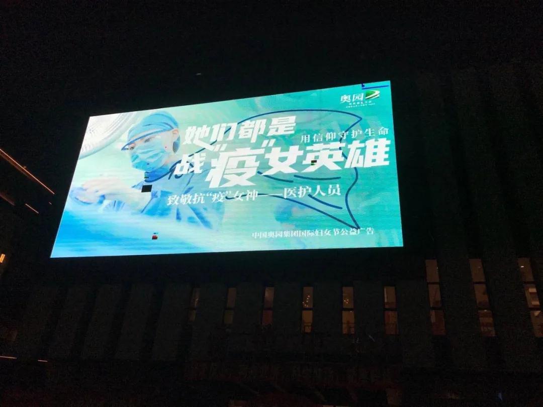 在國(guó)際婦女節(jié)來(lái)臨之際,3月6日,中國(guó)奧園聯(lián)動(dòng)遍布在全國(guó)各地的21個(gè)項(xiàng)目樓盤(pán)及商業(yè)物業(yè)項(xiàng)目的35塊LED大屏,展現(xiàn)她們美麗堅(jiān)韌的身影,致敬戰(zhàn)“疫”前線(xiàn)的女性,并為社會(huì)各界齊心抗疫加油打氣。