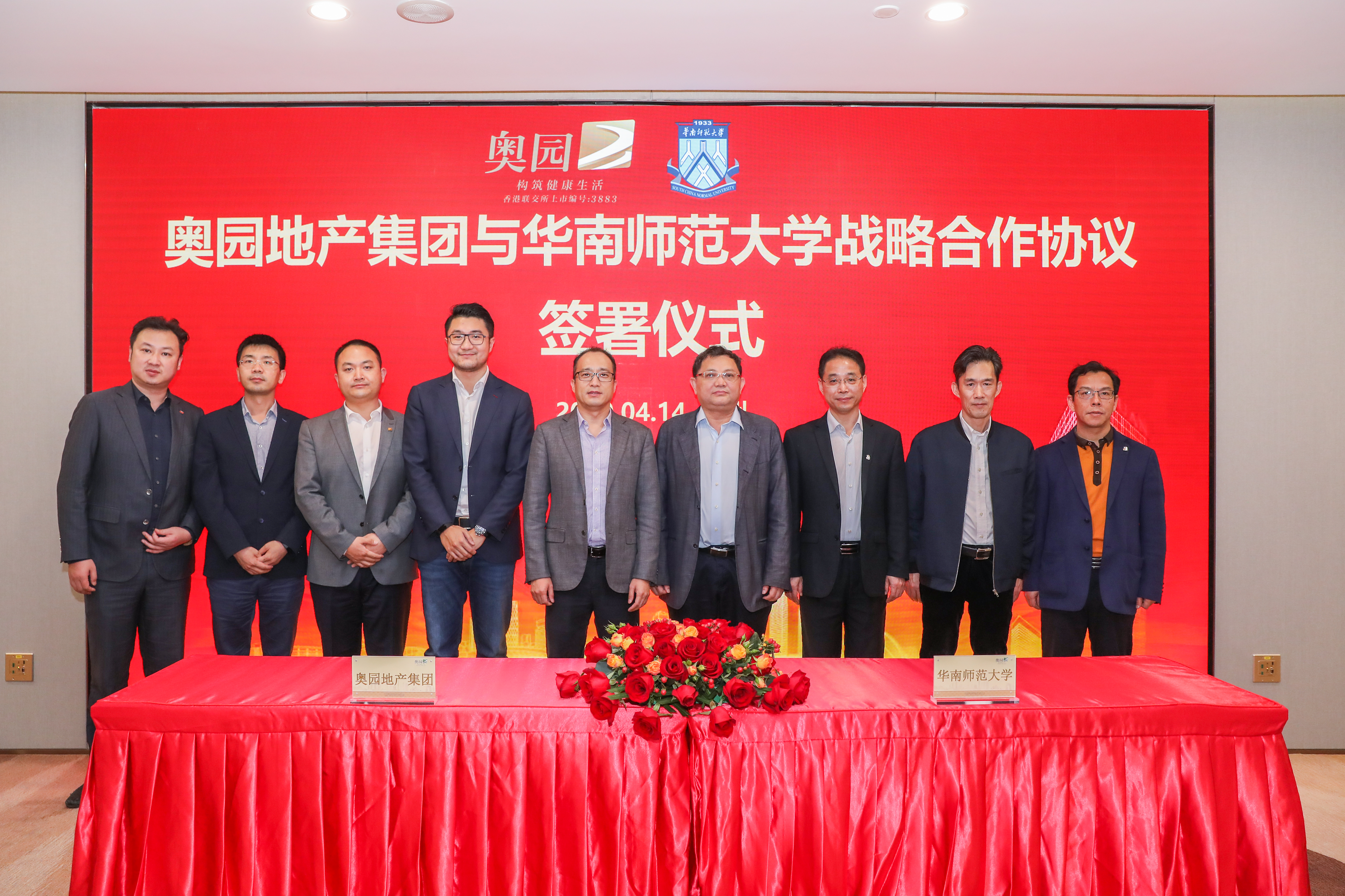 2020年4月14日,中國奧園與華南師范大學(xué)簽署戰(zhàn)略合作協(xié)議,雙方將在合作辦學(xué)、人才培養(yǎng)、舊改合作、體育合作、支教公益等領(lǐng)域,共同建立企業(yè)與學(xué)校的合作聯(lián)動機(jī)制,實現(xiàn)多層次合作與共同發(fā)展。華南師范大學(xué)校長王恩科、副校長陳文海,中國奧園集團(tuán)執(zhí)行董事、營運(yùn)總裁、地產(chǎn)集團(tuán)總裁馬軍,地產(chǎn)集團(tuán)總裁助理張杰等領(lǐng)導(dǎo)出席簽約儀式。