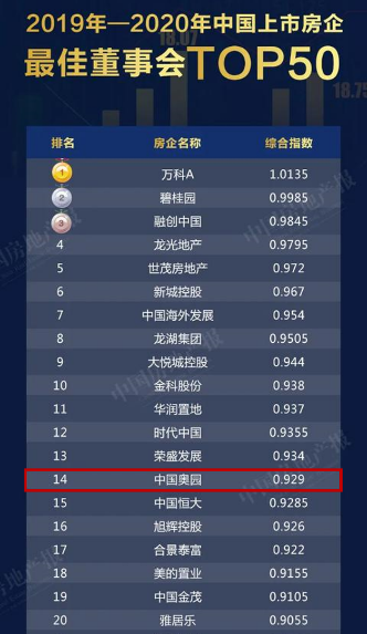 穩(wěn)健治理成就千億龍頭 中國奧園躍登上市房企董事會(huì)第14名