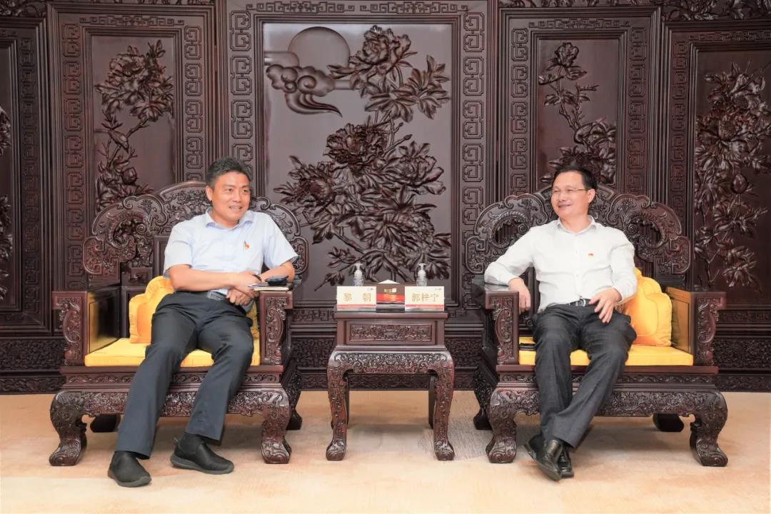中國奧園集團(tuán)黨委書記、總裁郭梓寧(右)與農(nóng)業(yè)銀行廣州分行行長黎朝(左)交流座談