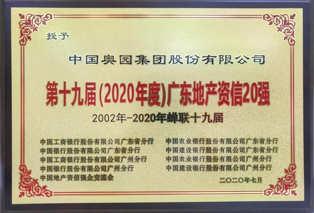 中國(guó)奧園連續(xù)19年登榜“廣東地產(chǎn)資信20強(qiáng)”