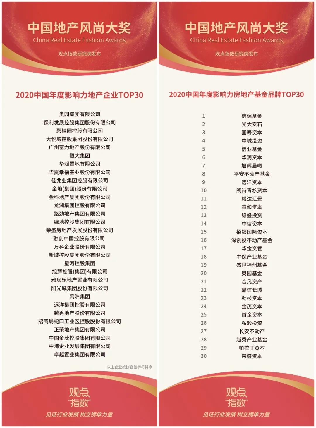 同時(shí),作為中國(guó)奧園旗下專注于房地產(chǎn)私募股權(quán)投資領(lǐng)域的奧園基金亦獲評(píng)“ 2020中國(guó)年度影響力房地產(chǎn)基金品牌TOP30”稱號(hào)。
