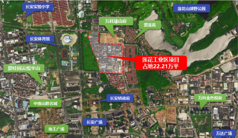 該項(xiàng)目位于東莞第一經(jīng)濟(jì)強(qiáng)鎮(zhèn)長(zhǎng)安中心區(qū)蓮花山豪宅版塊范圍內(nèi),緊鄰長(zhǎng)安廣場(chǎng)、長(zhǎng)安體育中心和大嶺山森林公園,距離長(zhǎng)安鎮(zhèn)政府約1.5km,距離京港澳高速入口約2.5km,距離長(zhǎng)安汽車站約2.7km,交通便利,地理位置十分優(yōu)越,是長(zhǎng)安環(huán)境最好、配套最完善版塊。項(xiàng)目占地面積22.8萬㎡,預(yù)計(jì)貨值170億,現(xiàn)狀以舊廠為主,拆遷難度較小,未來將打造為集居住、商業(yè)、研發(fā)等功能于一體的高品質(zhì)項(xiàng)目。