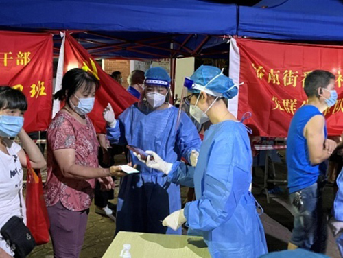 自當(dāng)天16時(shí)收到消息,奧園集團(tuán)黨委、番奧社區(qū)黨委、奧園廣場(chǎng)商圈黨委、奧園集團(tuán)團(tuán)委、奧園慈善基金會(huì)立即聯(lián)合行動(dòng),對(duì)接番禺區(qū)南村鎮(zhèn)黨委、橋南街黨工委了解情況,并迅速在1小時(shí)內(nèi)集結(jié)20多名黨團(tuán)員志愿者快速到崗萬(wàn)博和番奧社區(qū)核酸檢測(cè)點(diǎn)開(kāi)展志愿服務(wù),并為現(xiàn)場(chǎng)工作人員捐贈(zèng)慰問(wèn)品,第一時(shí)間筑起抗疫防疫紅色堡壘。