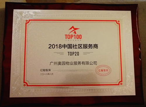 奧園榮獲“2018年中國社區(qū)服務(wù)商TOP20”等獎(jiǎng)項(xiàng)