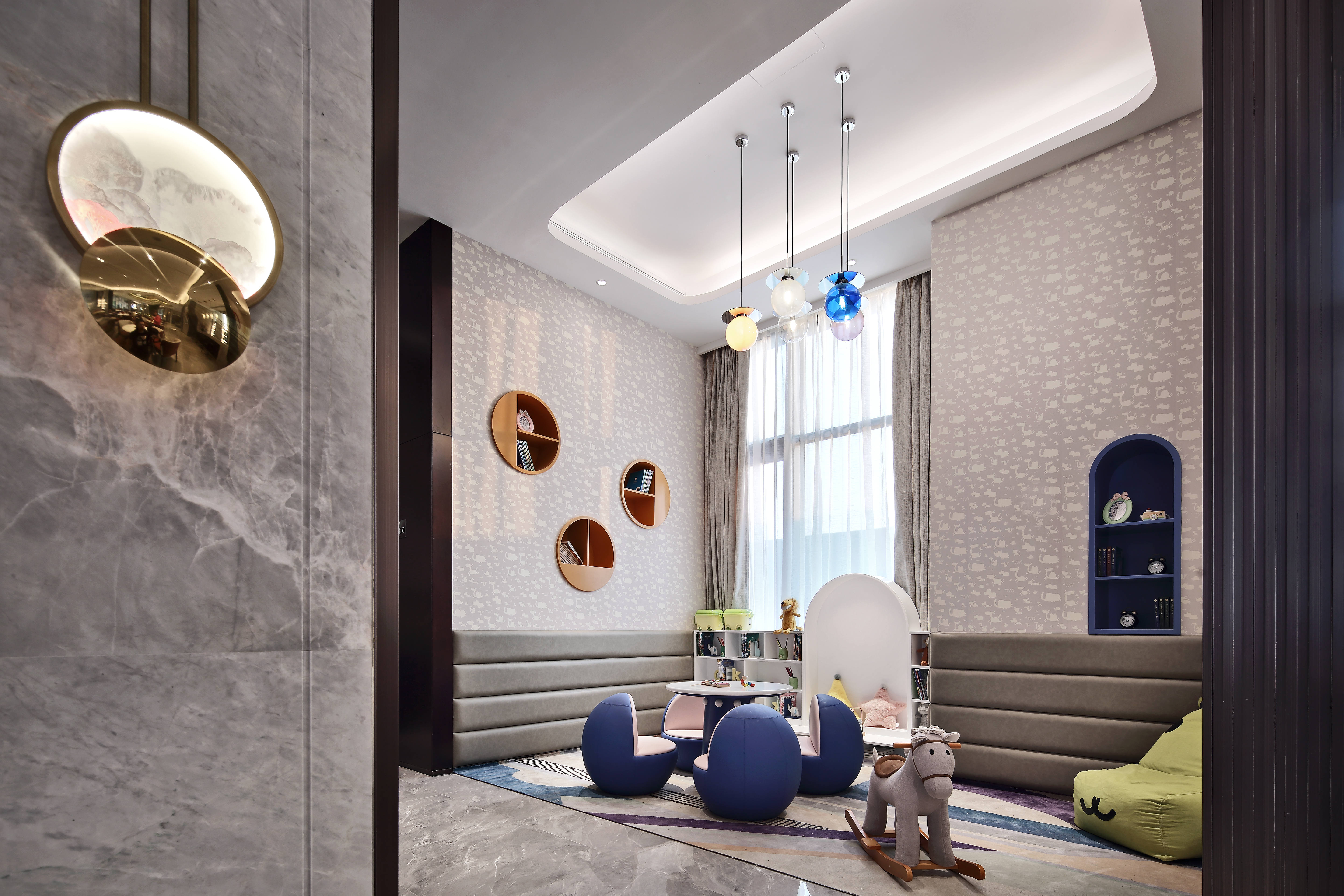 項目位于福園街與亭洪路的街角,西臨萬達(dá)大型綜合體,南靠10+1商業(yè)大道,擁有得天獨(dú)厚的城市展示面。設(shè)計團(tuán)隊以“品味時間美學(xué)、體會現(xiàn)代藝術(shù)、感觸當(dāng)代匠心”為設(shè)計理念,深入詮釋高凈值人群的居住美學(xué),演繹出一條帶有層次的情緒動線——“登門-探索-驚嘆-歸心”四重空間意境。